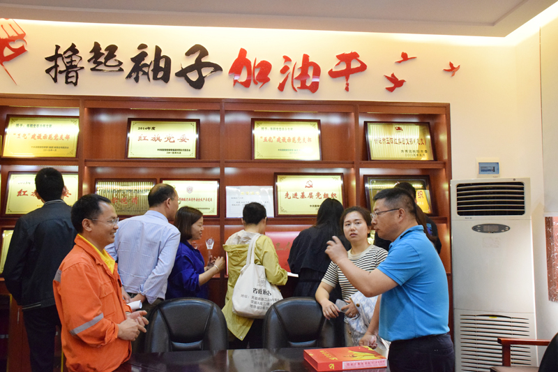 隨后,大家現(xiàn)場參觀了解180分廠、煉鋼分廠、能源分廠黨支部“五化”建設(shè)情況。在氛圍濃厚的黨建活動室內(nèi),樣式規(guī)范、內(nèi)容豐富的“紅本本”,上墻公示的黨員承諾指標(biāo)和黨建競賽“紅黃榜”,形式多樣的“主題黨日”,瓶頸工序的“登高PK”等亮點贏得大家紛紛點贊。“太細(xì)致了”“這個本子好”,大家一邊“翻箱倒柜”查看黨建資料并用手機拍照記錄,一邊詢問“黨員積分管理怎樣實施的”“主題黨日有什么好的形式”……探討越來越深入,交流越來越熱烈,盡管時間已臨近中午12:30,大家仍然意猶未盡。